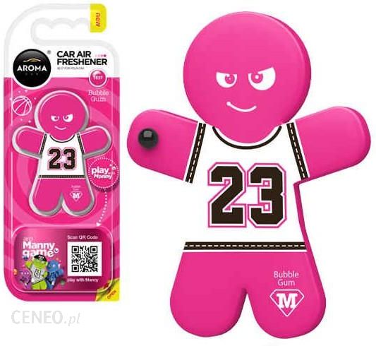 AROMA CAR Odświeżacz samochodowy MANNY Bubble GumOdświeżacz powietrza w postaci ludzika montowanego w kratkę wentylacyjną samochodu.Jednym z największych walorów odświeżaczy Manny jest ich wydajność (utrzymujący się do ośmiu tygodni aromat, skutecznie neutralizujący nieprzyjemne zapachy np. dymu tytoniowego), duża paleta zapachów oraz urzekający wygląd.Zaproś Mannego do siebie!Zapach: guma balonowa.