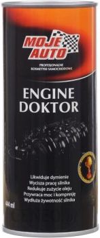 Likwiduje dymienieWycisza pracę silnikaRedukuje zużycie olejuPrzywraca moc i kompresjęWydłuża żywotność silnikaDo wszystkich rodzajów silników Opis produktuRegenerator silnika, uszczelnia pierścienie tłokowe zwiększając kompresje oraz ciśnienie oleju. Właściwości produktuEngine Doktor jest najwyższej jakości środkiem, który można stosować we wszystkich rodzajach silników:nowych lub starychwysokoprężnych (diesel)benzynowychzasilanych LPG lub CNGmoże być stosowany w silnikach z turbosprężarkąJest mieszalny ze wszystkimi rodzajami olejów mineralnych, półsyntetycznych i syntetycznych. Może być również stosowany do mechanizmów różnicowych oraz skrzyń biegów nawet z olejami przekładniowymi klasy GL-5. Nie zawiera szkodliwego dla środowiska i człowieka teflonu (P.T.F.E.)Engine Doktor jest szczególnie zalecany do silników pracujących pod dużym obciążeniem lub w ekstremalnych warunkach (ruch miejski lub obciążone samochody dostawcze). Skutecznie podnosi sprawność silnika. Zmniejsza zużycie oleju w znacznym stopniu redukując dymienie. Uszczelnia pierścienie tłokowe dzięki czemu zwiększa kompresję oraz ciśnienie oleju. Przywraca moc i przyspieszenie.Zastosowany w nowym silniku spełnia funkcję ochronną. Dzięki swoim właściwościom smarnym w znacznym stopniu zmniejsza tarcie i wydłuża żywotność silnika. Sposób użyciaPreparat należy wlać do rozgrzanego silnika.Jedno opakowanie stosować na ok. 4 litry oleju silnikowego.W przypadku dużego zużycia oleju należy zastosować 2 opakowania. Pojemność 444 ml…