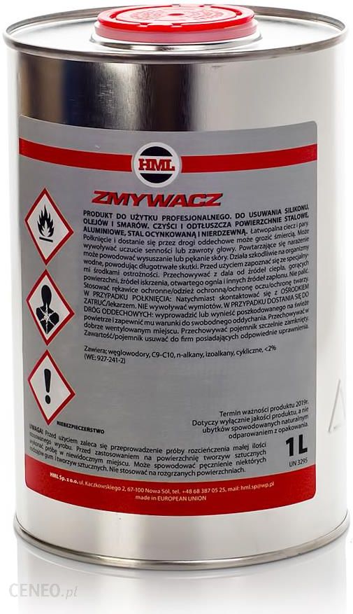 HML Zmywacz Silikonowy 1LSkuteczny i bezpieczny sposób odtłuszczenia powierzchni.HML Zmywacz Silikonowy 1L – specjalnie opracowanym rozcieńczalnikiem stosowanym do oczyszczania i odtłuszczania powierzchni przed lakierowaniem. Skutecznie usuwa takie zanieczyszczenia jak kurz, tłuszcz, wosk, smary, oleje, silikon zawarty w powietrzu oraz inne zabrudzenia. Stosuje się bezpośrednio przed położeniem warstwy emalii nawierzchniowej. Zwiększa przyczepność oraz poprawia jakość otrzymanej powłoki. Dzięki specjalnym dodatkom zapobiega powstawaniu tzw. kraterów silikonowych (rybich oczek)Mocne StronyDokładnie odtłuszczona i oczyszczona powierzchnia jest warunkiem trwałej powłoki lakierowej.Idealny do stali, aluminium, blachy ocynkowanej i innych.Skomponowany ze szlachetnych rozpuszczalników.Produkt w praktycznej puszce z lejkiem.e-lakiernik – partner importeraJesteśmy oficjalnym dystrybutorem produktów HML, dzięki temu gwarantujemy, że zawsze otrzymasz oryginalne wyroby najlepszej jakości. Dbamy o wysoki stan magazynowy oferowanych przez nas towarów, dlatego nasi klienci mogą być pewni błyskawicznej realizacji kompletnego zamówienia.HML – wysoka jakość w polskiej cenieFirma HML z siedzibą w Nowej Soli jest prężnie rozwijającym się importerem i dystrybutorem asortymentu z branży lakiernictwa samochodowego. Oferta produktowa stale poszerzana jest o towary marki własnej – sygnowanej logiem HML. W skład tego asortymentu wchodzą szpachlówki, środki ochrony karoserii, taśmy lakiernicze, materiały pomocnicze, tarcze polerskie oraz wiele innych produktów, których cechą wspólną jest najwyższa jakość.