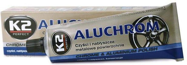 K2 ALUCHROM120gK003Pasta czyści i nabłyszcza metalowe powierzchnieAluchrom jest rewelacyjną pastą do czyszczenia i nabłyszczania wszelkiego rodzaju elementów chromowanych, aluminiowych, posrebrzanych, pozłacanych, wykonanych z brązu lub ze stali nierdzewnej, a także wielu innych metali. Szczególnie polecamy do konserwacji felg aluminiowych.SPOSÓB UŻYCIA:1. Nanieść produkt na mały fragment czyszczonej powierzchni i lekko wcierać.2. Po chwili nadmiar zetrzeć.3. Następnie polerować przy pomocy miękkiej szmatki.UWAGA: W przypadku mocno zabrudzonych lub zniszczonych powierzchni czynności powtórzyć.