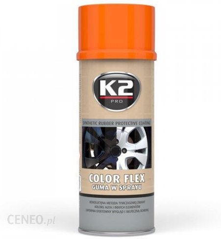 Rrewolucyjna metoda tymczasowej zmiany koloru auta i innych elementów. Zapewnia efektowny wygląd i skuteczną ochronę. Zabezpiecza przed zarysowaniami, brudem, wilgocią,rozcieńczonymi kwasami, korozją, olejami, smarami. Nadaje się do nanoszenia na elementy lakierowane, felgi stalowe i aluminiowe, zderzaki, drewno, metal, szkło, tworzywa sztuczne i wiele innych. Pomalowane elementy można myć z użyciem gąbki oraz szamponu. Powłoka posiada doskonałą elastyczność, nie pęka, nie kruszy się. Wytrzymuje temperatury od -30⁰C do ponad 90⁰C. Naniesioną powłokę można łatwo usunąć. Po ręcznym usunięciu K2 Color Flex nie pozostawia żadnych śladów, a powierzchnia jest dokładnie w takim samym stanie jak w chwili nałożenia. SPOSÓB UŻYCIA:1. Malowane powierzchnie muszą być czyste, suche, odrdzewione i odtłuszczone.2. Przed użyciem dokładnie wstrząsnąć przez ok. 3 min.3. Sprawdzić działanie na lakier w niewidocznym miejscu.4. Nanosić z odległości 20-30 cm. Dla uzyskania idealnie gładkiej powierzchni bez zacieków, nanieść od 3 do 5 bardzo cienkich warstw. Odstępy czasowe miedzy warstwami powinny trwać ok. 5 minut w zależności od temperatury otoczenia oraz grubości nakładanych warstw. W obszarach krytycznych (rogi, krawędzie) powłoka musi być wystarczająco gruba, aby uniknąć pęknięć w czasie usuwania folii.5. W celu usunięcia powłoki, podważyć krawędź a następnie odrywać powoli ręcznie resztę. Czasy schnięcia: odporność na dotyk 10 min., półsuchość 30 min., pełne utwardzenie 2 godz. Pojemność: 400 ml…