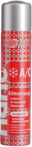 Technologia nanocząsteczkowa:Zabija bakterie i grzybyCzyści i neutralizuje układ klimatyzacjiUsuwa nieprzyjemne zapachy Opis produktuW porównaniu z konwencjonalnymi środkami działa permanentnie, a nie tylko doraźnie w chwili zabiegu Właściwości produktuW porównaniu z konwencjonalnymi środkami działa permanentnie, a nie tylko doraźnie w chwili zabiegu. Efektywnie oczyszcza układ klimatyzacyjny w samochodzie. Eliminuje bakterie i grzyby, odświeża oraz zabezpiecza przed nieprzyjemnym zapachem na okres od 3 do 5 miesięcy. Sposób użyciaW czasie czyszczenia bezwzględnie wyłączyć klimatyzacjęNastawić nagrzewnicę na zimny nawiew powietrzaWyjąć filtr antypyłkowy systemu klimatyzacjiUstawić nawiew powietrza do kabiny na nawiew centralny deski rozdzielczejUruchomić dmuchawę na maksymalnych obrotachWstrząsnąć mocno pojemnik przed użyciemUmieścić wylot rurki dozującej z preparatem czyszczącym bezpośrednio w środku głównego kanału dolotowego klimatyzacji i rozpocząć rozpylanieStosować długie serie rozpylania, aż do zużycia całej zawartości pojemnika, odczekać 15min. Po tym czasie można normalnie użytkować klimatyzację Pojemność 200 ml…