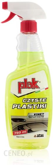 PLAK VINETCzyste plastiki750 ml (pojemność)SCVINET-750. (kod produktu)Dokładnie czyści i odtłuszcza wszelkie elementy wykonane z plastiku, skaju, linoleum, powierzchnie lakierowane i emaliowane.Usuwa nawet najcięższe zabrudzenia i ożywia kolory.Pozostawia przyjemny i świeży zapach.Idealny do czyszczenia obudowy komputerów i monitorów, sprzętu biurowego, plastikowych ram okiennych.Informacje o firmie:Produkty firmy Atas cieszące się dużym zaufaniem wśród użytkowników to produkty marki Plak.ATAS to jeden z najbardziej znanych i cenionych producentów chemii i kosmetyków samochodowych w całej Europie. Firma została założona w 1964 roku we włoskiej miejscowości Codisotto. Obecnie produkty z logo ATAS używane są w kilkudziesięciu krajach świata przez kierowców oraz profesjonalistów w warsztatach i myjniach samochodowych.W swojej ponad 40-letniej historii firma zawsze stawiała na innowacyjność i wysoką jakość produktów. To właśnie te dwa czynniki są podstawą tak dużej popularności produktów ATAS na europejskim rynku.Najwyższa oraz co ważne powtarzalna jakość jest możliwa dzięki stosowaniu odpowiednich procedur i wdrożeniu systemu zarządzania jakością ISO 9001:2000. Innowacyjność jest z kolei efektem pracy naukowców w centrum badawczym ATAS, którzy codziennie zajmują się udoskonalaniem produktów i opracowywaniem nowych rozwiązań.