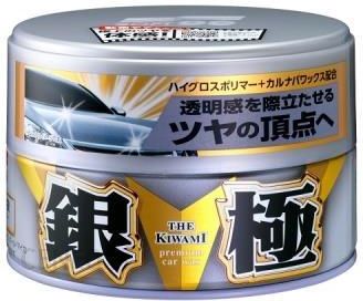 SOFT99 KIWAMI EXTREME GLOSS WAX SILVER 200GSoft99 Kiwami Extreme Gloss Silver Hard Wax – Klasyka pośród wosków hybrydowych. Syntetyczna baza z domieszką naturalnej Carnauby sprawia, że Kiwami świetnie podkręca wygląd lakieru i zachowuje przy tym znakomitą trwałość. Idealna propozycja na wiosnę lub jesień! Kiwami to obowiązkowa pozycja w Twoim wyposażeniu.Okres trwałości połysku może trwać nawet do 3 miesięcy.Sposób użycia:Przed aplikacją karoserię dokładnie umyć i oczyścić.Pozostałą na karoserii wodę wytrzeć. Nałożyć odpowiednią ilość preparatu na załączoną do zestawu gąbkę i rozprowadzić równomiernie, tworząc cienką warstwę.*Zaaplikowanie zbyt grubej warstwy może być przyczyną powstawania nierówności.Pozostawić do wyschnięcia aż karoseria nabierze białego koloru (na około 5-10 minut).Dotrzeć wosk delikatną mikrofibrą.