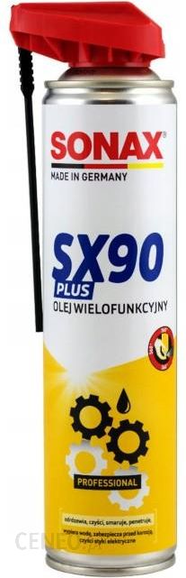 Sonax Professional SX90 Plus olej – odrdzewiacz w sprayu 400mlWielofunkcyjny preparat w sprayu przeznaczony do szybkiego odrdzewiania powierzchni i połączeń. W szybki sposób poluzowuje silnie zapieczone i zardzewiałe śruby, nakrętki, zawiasy oraz inne części mechaniczne.Właściwości:znajduje zastosowanie w samochodzie, warsztacie, domu, biurze, ogrodzie i rolnictwiedzięki silnym właściwościom penetrującym preparat wnika w miejsca nawet trudno dostępne, likwiduje piski i smaruje ruchome elementywypiera wilgoć, czyści styki elektryczne poprawiając ich przewodnośćbezbarwny, nie zawiera silikonu, usuwa smołę i resztki klejówjest bezpieczny dla plastikówspecjalny zawór umożliwia precyzyjne nanoszenie preparatuOpakowanie: spray 400ml z rurką do aplikacji.
