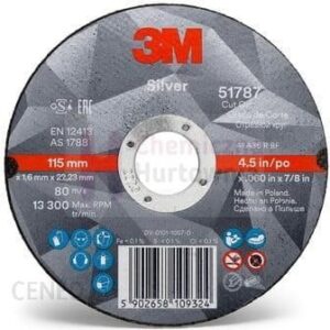 Tarcza do cięcia 3M 51802 Silver T42 – 180 mm x 2,5 mm x 22,23 mm Zaprojektowana do szybkiego cięcia metalowych rur, profilów, blach i innych Niezwykła trwałość wydłuża żywotność tarczy, zapewniając doskonałą wydajność. Precyzyjnie kształtowane ziarno ścierne 3M skrawa niezwykle szybko, co bezpośrednio wpływa na znaczną poprawę wydajności. Tarcza do cięcia 3M™ Silver została…