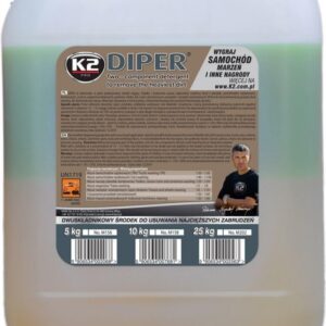 K2 Diper Dwuskładnikowa Silna Piana Aktywna 10LK2 DIPER DWUSKŁADNIKOWA SILNA PIANA AKTYWNA 10LDwuskładnikowy alkaliczny detergent o wysokim stężeniu, o własnościach pieniących, który jest skuteczny nawet na najbardziej nieustępliwy brud na nadwoziach samochodów i plandekach używanych na platformach i samochodach ciężarowych itp. Znakomity również do cystern, posadzek w garażach i w stacjach obsługi, warsztatach mechanicznych oraz…
